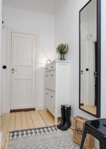 La particularité des couloirs dans le Khrouchtchev est que pour leur arrangement est utilisé principalement style minimalisme. C'est-à-dire que sont installés les meubles les plus simples et de taille moyenne avec une finition simple. Dans ce cas, n’installez pas d’éléments décoratifs ni de structures supplémentaires. Un tel couloir n’est jamais encombré de chaussures, car il occupe tout l’espace libre sur le sol et ne permet pas aux ménages et aux invités de faire demi-tour. Par conséquent, il doit y avoir un endroit pour stocker des chaussures.