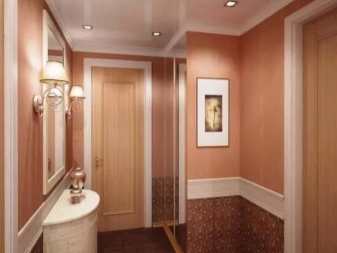 Convient également au papier peint en bambou naturel. Ils sont capables de servir assez longtemps et paraissent en même temps très originaux. Le seul inconvénient du revêtement en bambou est son coût plutôt élevé. Pour la conception des murs de petits couloirs de Khrouchtchev, le papier peint est souvent utilisé pour la peinture. Ils peuvent avoir une texture très différente, il vous suffit de choisir la couleur du revêtement. Ils sont également faciles à entretenir.