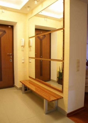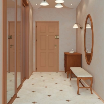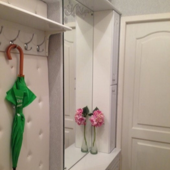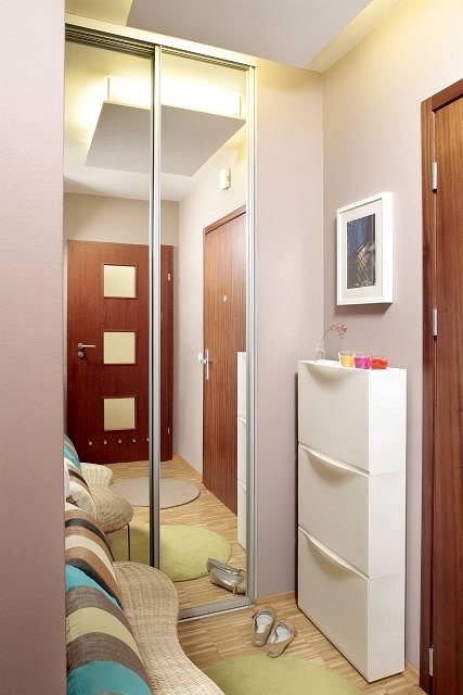 Beaucoup de gens pensent qu'il est assez difficile de créer un agencement original dans un petit couloir de 3 mètres carrés dans un appartement d'une pièce. Mais ce n'est pas vrai, car dans ce cas, vous pouvez utiliser différents objets d'intérieur, y compris des meubles, mais ils devraient être un peu plus petits. Équipez admirablement une pièce en utilisant une armoire à miroir étroit.Cependant, il a généralement des lignes lisses et il n'y a pas de coins tranchants. Une telle garde-robe ne comportera pas de poignées ni d'éléments de décoration inutiles, elle aura donc l'air très retenue.