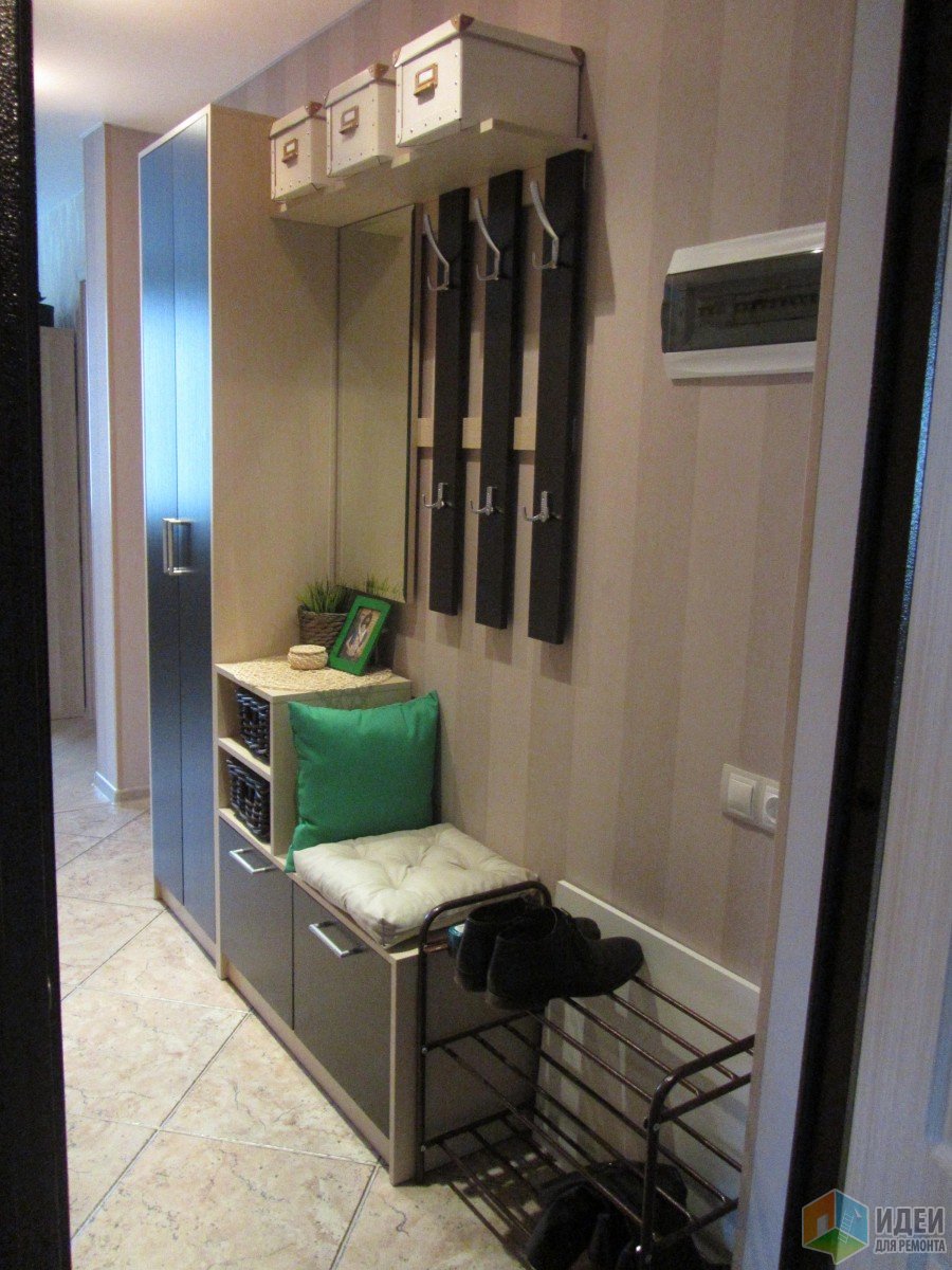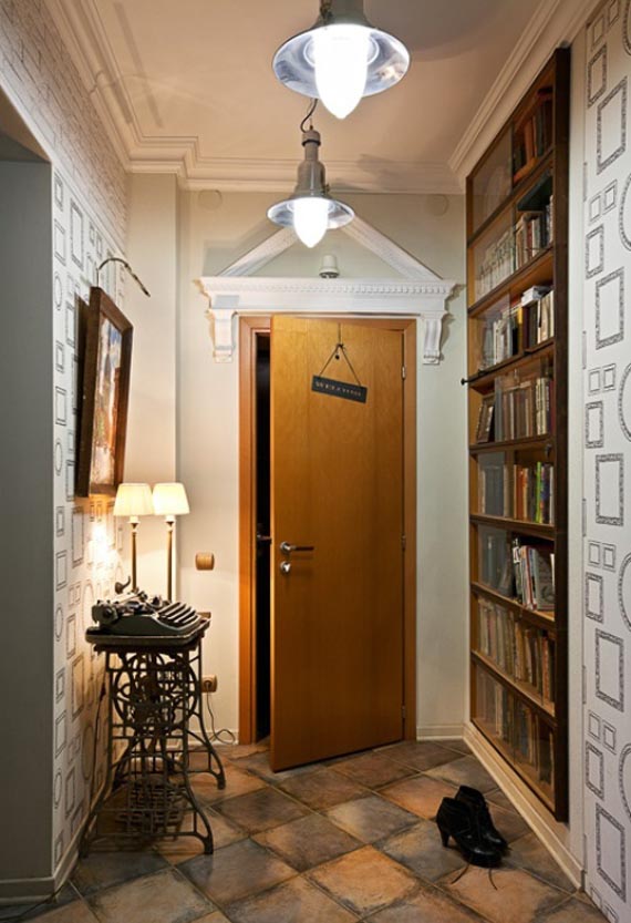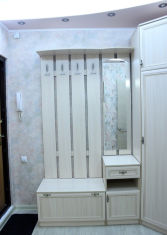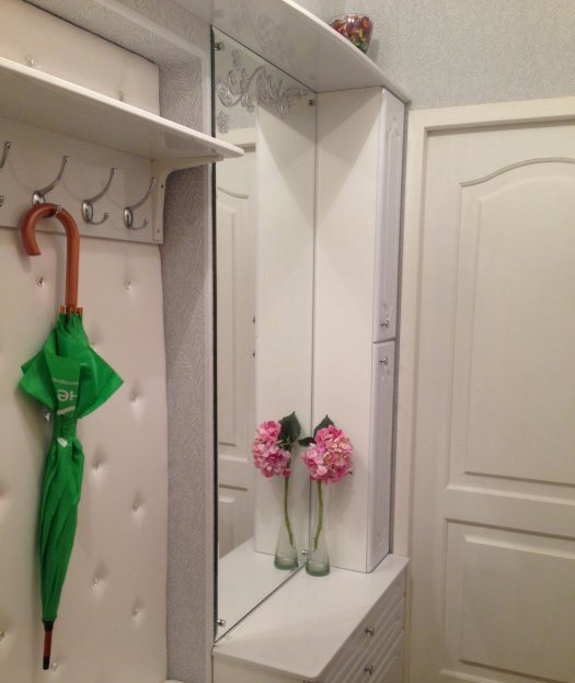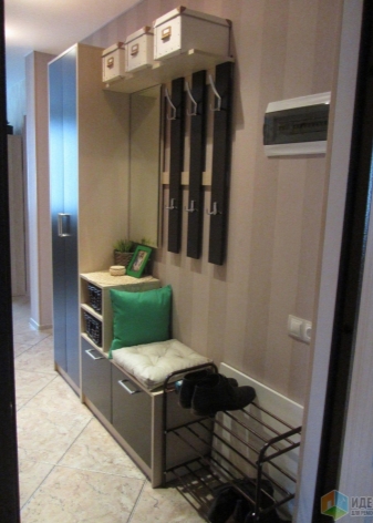 La bibliothèque est un élément très fonctionnel, puisque vous pouvez vous y asseoir ou vous appuyer dessus tout en changeantpereobuvanii. Ceci est très pratique, car dans le couloir de Khrouchtchev, il est très difficile de placer même une chaise haute ou un pouf.
