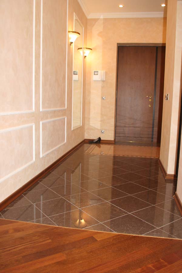 - Une alternative serait les carreaux de céramique. Elle a l’air très élégant et convient parfaitement au couloir, car elle ne craint pas les effets de l’humidité et de la saleté. C'est durable et pratique.