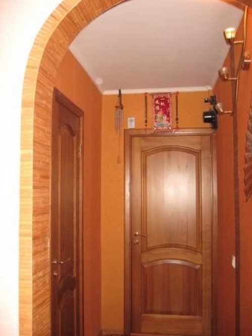 De nombreux couloirs de Khrouchtchev ont des ouvertures intérieures en forme d'arches. En effet, l'encadrement et la porte elle-même prennent généralement beaucoup de place. L'arcade permet de lisser la différence de taille entre les pièces adjacentes et combine ainsi le petit couloir avec d'autres pièces. Donc, vous pouvez le remplir avec de l'espace et de la lumière.