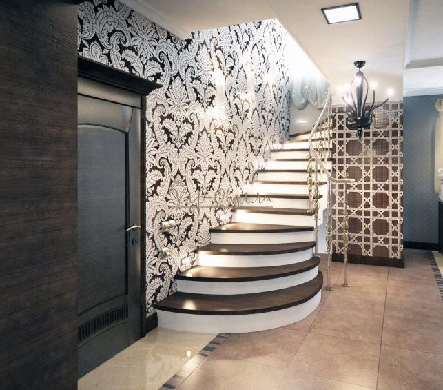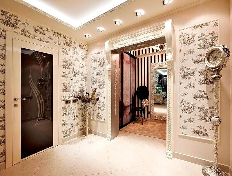 La couleur du hall d’entrée avec le papier peint est différente et dépend du goût de chacun. Certains préfèrent la praticité,par conséquent, les nuances des revêtements muraux sont plus souvent sombres, en sourdine et non tachant.