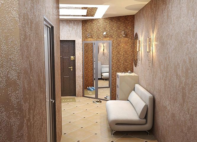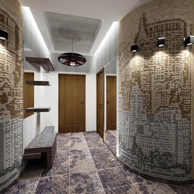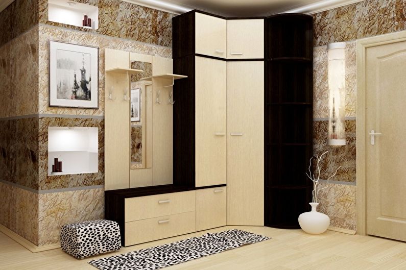 - Couloir - un endroit où le niveau de pollution est élevé, vous devriez donc privilégier les teintes pratiques ou les textures difficiles, à travers lesquelles vous pouvez cacher des taches ou d’autres saletés;