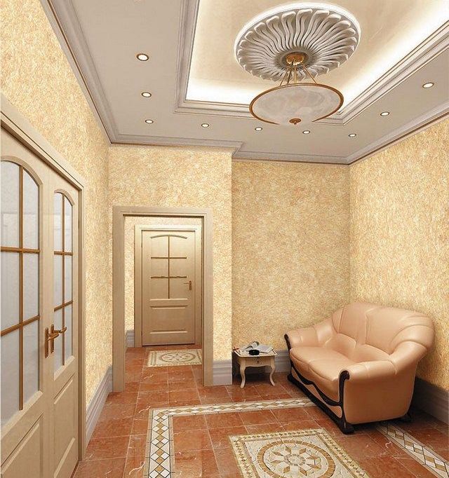 Flizelinovy finition diffère dans un substrat polymère dense de papier ou de fibres textiles. Ce matériau est parfaitement respirant, facile à utiliser, ignifuge, ne se décolore pas si le couloir est éclairé dans le volume adéquat et, le cas échéant, en mesure de masquer les irrégularités mineures des murs. L’inconvénient de ce papier peint est l’accumulation de poussière à la surface. En outre, il La couverture nécessite une manipulation prudente.