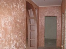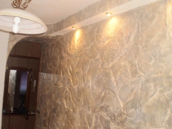 Les qualités sont également caractérisées plâtre structurel. Son principal avantage est considéré comme une couche mince. La composition du matériau comprend des éléments de quartz et de copeaux de marbre. Après application, la surface du plâtre devient une texture granulaire hétérogène. Le matériel est bon pour décorer les couloirs, il est sans odeur et sèche rapidement.