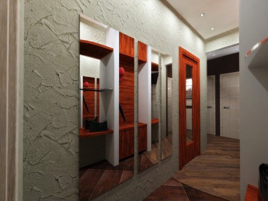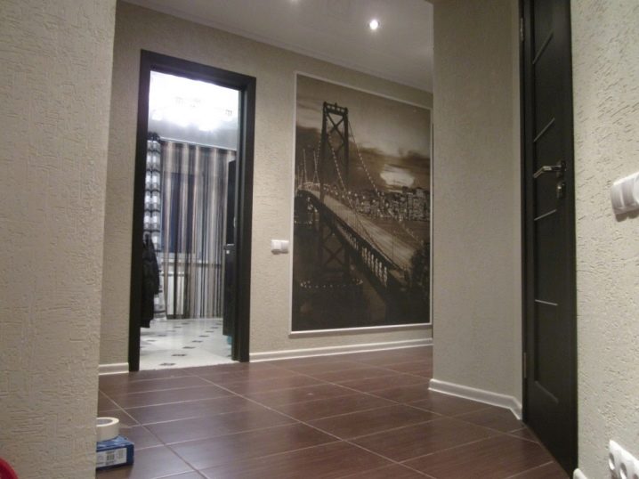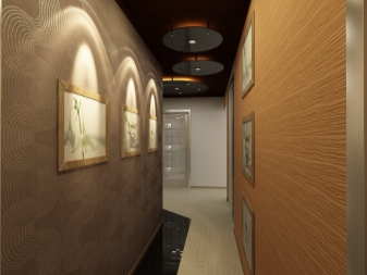 Faire un couloir nécessite une approche particulière.En fonction de son style, un type de revêtement approprié est sélectionné sur les murs. Les concepteurs recommandent d'utiliser du plâtre monochromatique pour les scolytes, qui peut également couvrir les surfaces dans le couloir.