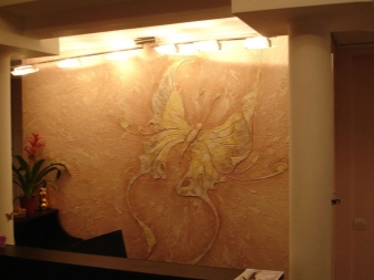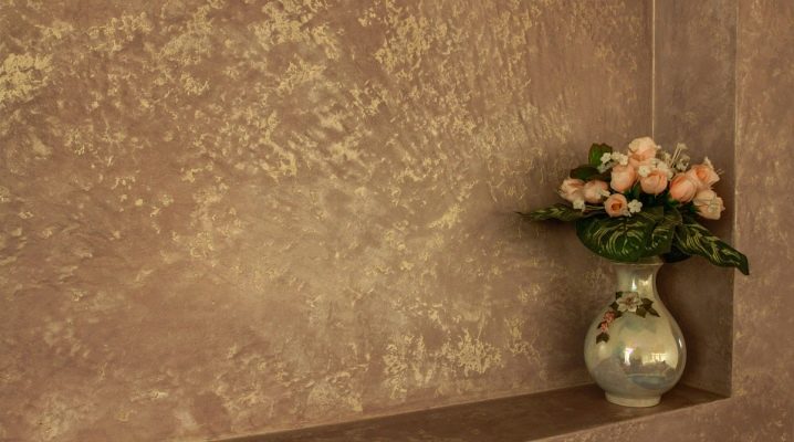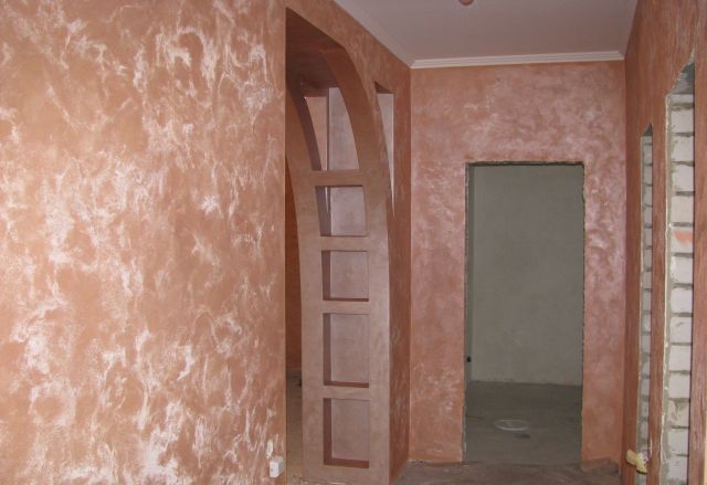 Le plâtre décoratif est présenté dans un large assortiment de couleurs. Il se produit à la fois monophonique et additionné de fibres de cuivre, d'or et d'argent. Les murs, décorés sous la nacre, ont également l’air insolite.