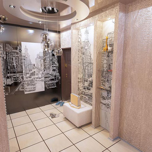 Pour la conception d'un appartement ou une maison est bien adapté texture avec des images. Avant d'acheter, il est conseillé de voir des échantillons du matériau et de présenter l'aspect futur du couloir dans le nouveau paysage. Il est également important de prendre en compte les caractéristiques techniques et les caractéristiques de la pièce.