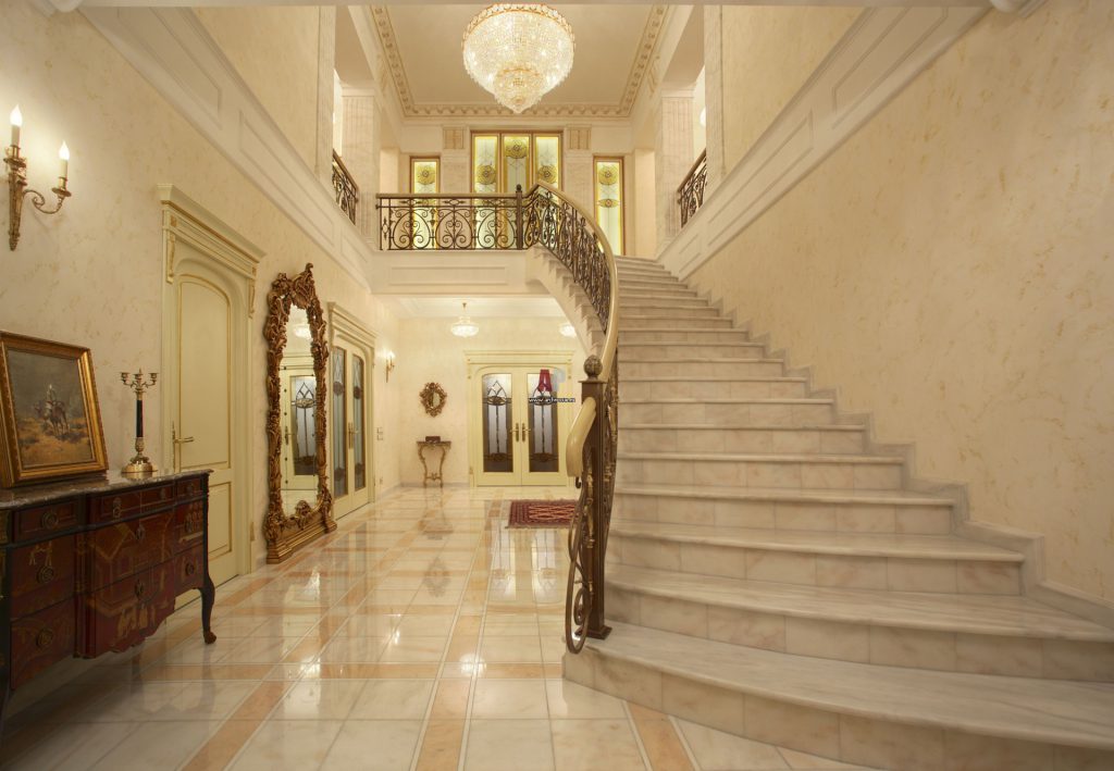Admirez les décorations des couloirs en imitant la pose de pierre ou de brique, mais en même temps, il est préférable de les décorer avec des ornements ou des gravures délicats.