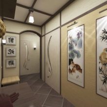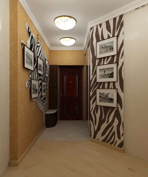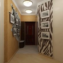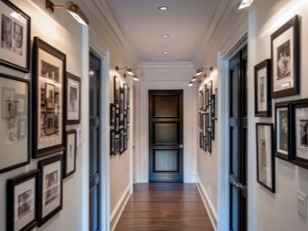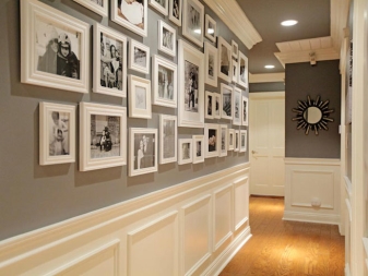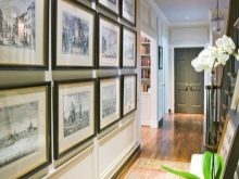 Vous pouvez décorer la pièce avec des cadres prêts à l'emploi avec des photos. Il peut s'agir de photos ou d'images que vous aimez. Vous pouvez accrocher des reproductions de peintures d'artistes ou des tableaux de l'animal aimé le long du couloir dans de beaux cadres. La peinture sur des murs peints semble également intéressante, mais pour créer une belle image, vous devez posséder des compétences en dessin ou un pochoir de qualité vous-même.