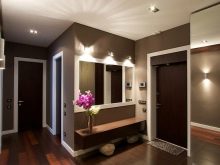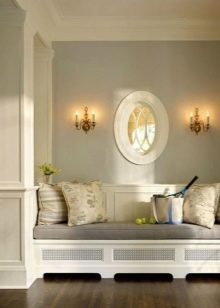Les surfaces brillantes doivent être remplacées par des surfaces mates. L'intérieur ravira son propriétaire pendant longtemps. Considérant que le plus souvent dans le couloir, il n’ya pas assez de lumière naturelle à cause du manque de fenêtres, palette de couleur froide est préférable de mettre de côté ou du moins, complétez-le avec des lampes fluorescentes lumineuses de couleur jaune chaude, sinon vous risquez de vous retrouver dans une pièce froide et inhabitée.