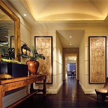 Décorer les murs dans une maison privée nécessite une approche plus prudente. Dans ce cas, le couloir interagit directement avec l’espace de la rue, ce qui signifie que l’impact négatif des conditions météorologiques dans ce cas sera plus perceptible.Si nous parlons de choisir le matériau le plus approprié, il convient de noter que dans une maison privée, le couloir est préférable de ne pas utiliser de papier peint, comme ils tombent trop vite, et devra recommencer la réparation.