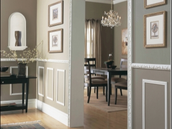 Avec facilité, vous pouvez créer un cadre de moulage élément de couleur contrastéePour ce faire, il est nécessaire de mesurer l’espace nécessaire avec une règle de construction, un crayon, un ruban de masquage adhésif le long de son bord pour protéger le reste du revêtement, de peindre l’élément souhaité avec une couleur différente, de retirer le ruban de masquage, d’attendre que l’élément soit sec et de coller la moulure le long de ses bords. largeurs.