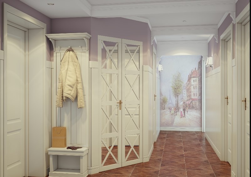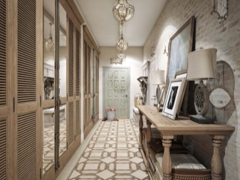 Populaire pour résoudre le couloir et le style grenier Un espace plutôt réfléchi et fonctionnel se cache derrière la grossièreté et la négligence extérieure de l'intérieur. Le style provençal convient aux petits couloirs, car il comporte des couleurs pastel claires, beaucoup de lumière et un décor lumineux.