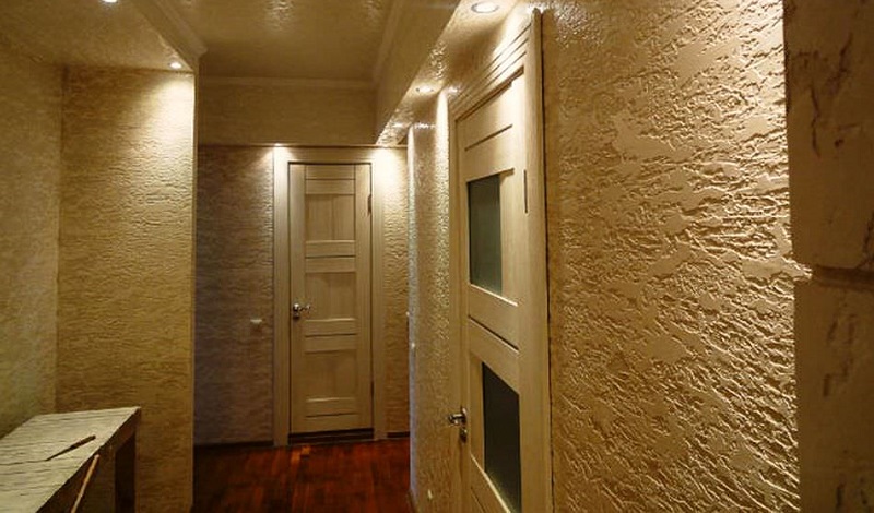 Si vous voulez une texture légère et légère, il vaut mieux choisir du plâtre texturé, c'est plus pratique. Une bonne option ici sera également les panneaux muraux en plastique ou en MDF, ils peuvent couvrir tout l'espace du mur et peuvent être combinés avec d'autres matériaux, tels que la peinture ou le même plâtre texturé.