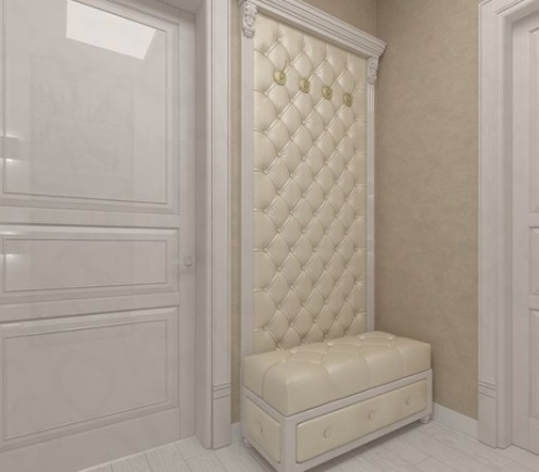 Avec le design décoratif du couloir dans le cours peut aller des objets complètement différents: liège, boiseries, pièces de monnaie, tissu, cuir, métal.
