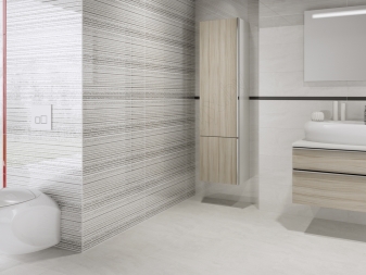 Les principaux fabricants modernes de carreaux en céramique et en grès cérame sont souvent proposés sur le marché de la construction dans des versions de conception prêtes à l'emploi du modèle de carreaux. Un tel ensemble prêt à l'emploi peut être étudié dans le catalogue et immédiatement acheté un ensemble de carreaux de la taille souhaitée en couleur conçue par le concepteur. Dans les ensembles peuvent être des carreaux de différentes tailles et formes, inlays et des frontières.Il ne reste au propriétaire qu’à déterminer comment cette image s’intégrera dans les dimensions de sa chambre et à calculer le volume de matériaux achetés. Le papier peint doit être combiné avec des carreaux. Cette combinaison a l'air très bien.