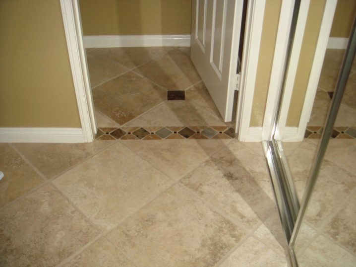 Faites attention à la surface du carreau de céramique. Il est préférable de poser des carreaux non émaillés ou des carreaux de porcelaine autour de la porte. Leur surface est plus rugueuse, ce qui réduit les risques de glisser sur le sol humide. Cette propriété de la tuile caractérise le paramètre de résistance au glissement. Bonnes caractéristiques de frottement montre un carreau avec revêtement en corindon.