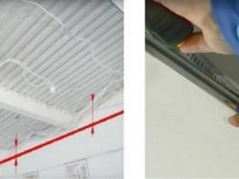 - Lorsque le panneau se coince pendant l'installation, il est impossible d'appuyer dessus, vous ne pouvez le pousser que depuis les coins.Les fils électriques sont immédiatement raccordés aux plaques installées avec les luminaires.