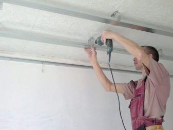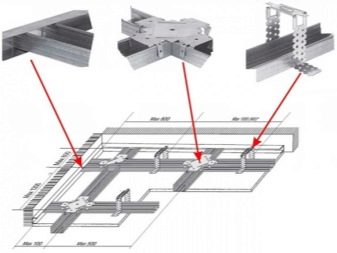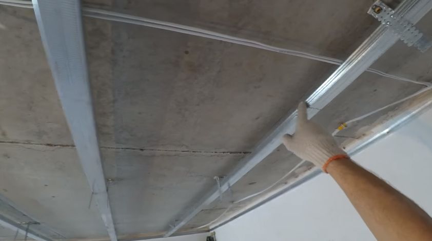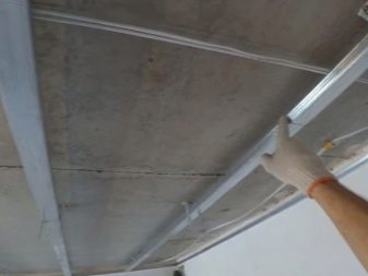- Ensuite, le profil de porteur est attaché aux suspensions, elles devraient être nivelées dans un seul plan, en utilisant un type de suspensions ajustable. Les profils trop longs sont reliés au sol, puis fixés à la suspension installée.