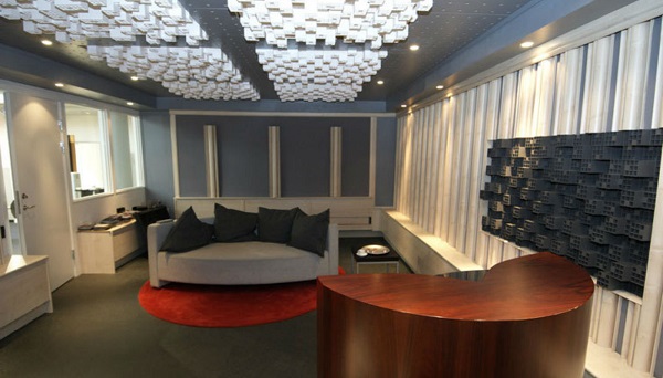 Système de panneaux sans cadre insonorisé se compose de matériaux de façade, de panneaux sandwich acoustiques incorporés. Cette acoustique intégrée se distingue de tout autre système par la possibilité de fixer les panneaux directement au plafond.par conséquent, il n'est pas nécessaire d'assembler le cadre. Ce type de fixation est rendu possible par l'élément de fixation intégré dans les modules eux-mêmes.