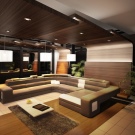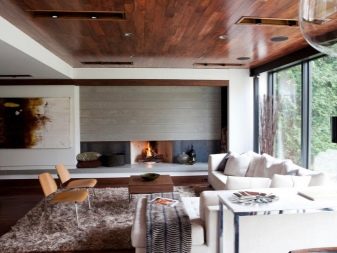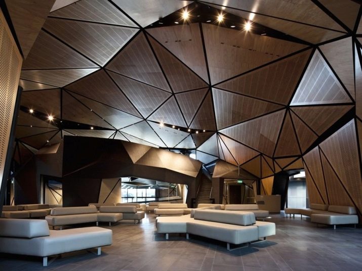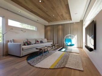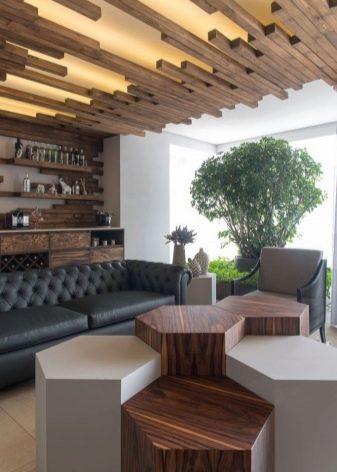 Cependant, si vous le souhaitez, vous pouvez travailler sur des panneaux en bois, en les décorant ou en ajoutant des bandes de LED. Cela permettra d'intégrer le plafond dans n'importe quel intérieur.