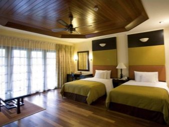 - La fiabilité. Ils se distinguent par leur bois et leurs propriétés d'isolation thermique et acoustique élevée.La salle avec des plafonds en bois sera chaleureuse et calme. Pour cette raison, ce matériau pour la finition du plafond est souvent choisi lors de réparations dans la chambre.