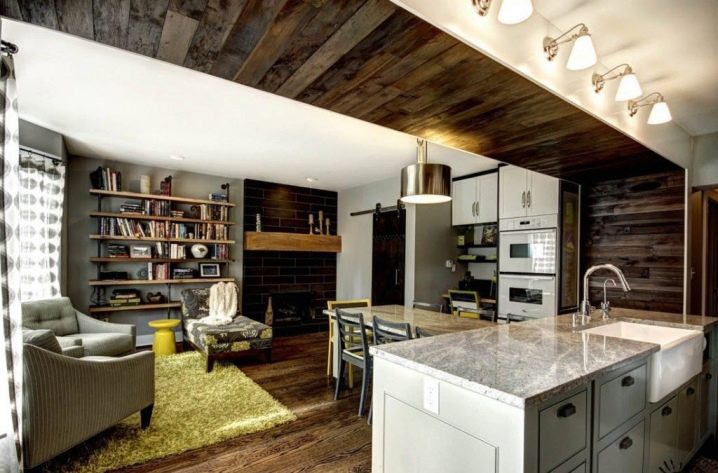 Ces deux styles peuvent être combinés en un seul, car ils comportent des éléments rustiques. Et dans l'ordre, et pour un autre style est caractérisé par l'utilisation de bois en grande quantité. Les plafonds de ce matériau noble ne font pas exception.