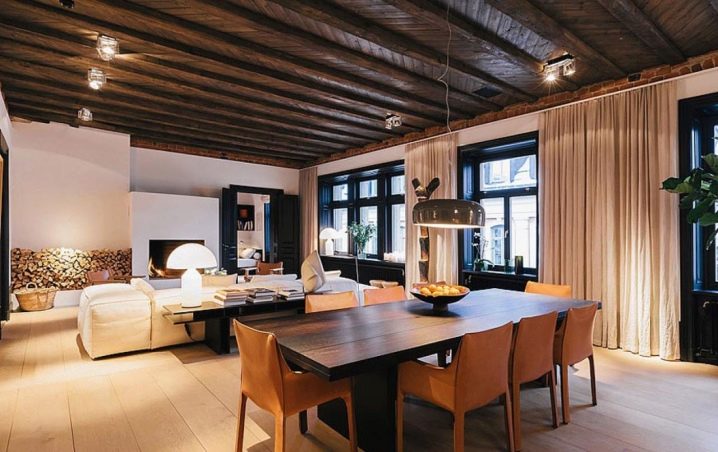 Outre ces tendances stylistiques, de nombreuses autres acceptent l’utilisation du bois comme matériau de finition pour le plafond.Par exemple, vous pouvez décorer une pièce dans un style classique en utilisant des panneaux de bois sculptés. Ou décorer la pièce dans le style loft avec de larges poutres de bois sombre.