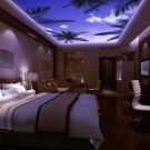 Le plafond avec une telle décoration sera en harmonie avec les murs de couleurs douces et pastel, ainsi que des meubles de couleurs riches.