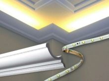 - De tels dispositifs sont absolument sans danger, car ils ne sont pas sujets à une surchauffe. De plus, les bandes de LED n'endommagent pas les fondations des plafonds. Cette qualité est particulièrement importante s’il existe des plafonds tendus à la mode dans la pièce.