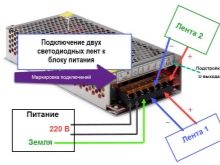 Aujourd’hui, il existe des cassettes 220V dans les magasins, qui n’ont pas besoin d’alimentations standard 12V. Seul un petit redresseur est nécessaire, à travers lequel ils seront connectés directement à la prise.