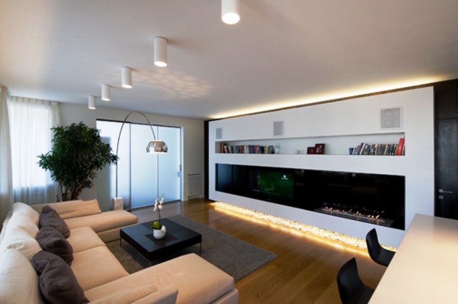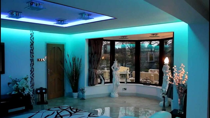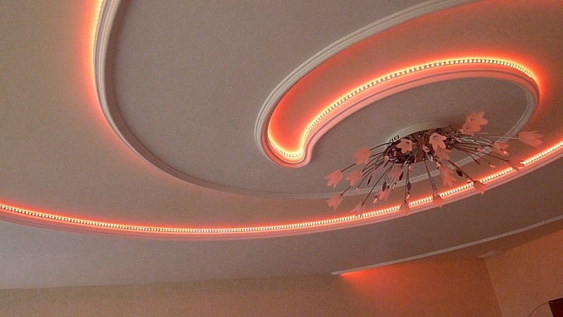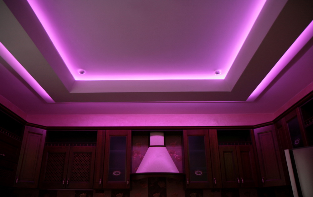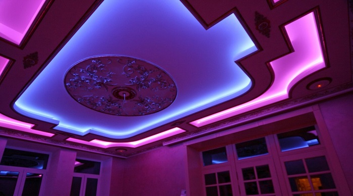 La bande de LED a fière allure au plafond. Il peut être choisi pour l’intérieur, quelle que soit sa couleur, et la structure du plafond elle-même peut comporter de nombreux niveaux de formes différentes.