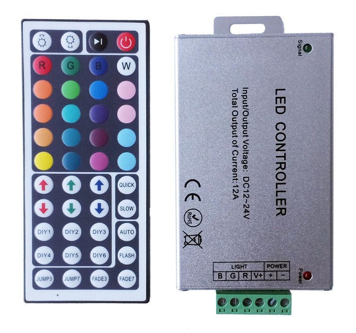 - Contrôleur. Achetez des bandes de haute qualité et faciles à utiliser avec des contrôleurs. En utilisant cet appareil, vous pouvez modifier indépendamment la luminosité de l'éclairage, ainsi que sa teinte.