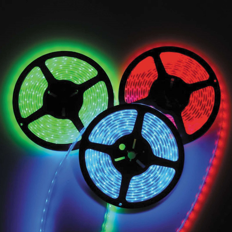Habituellement, ces options sont appelées bandes RVB. En eux, chaque diode est assemblage de LED rouges, bleues et vertes. Ces bandes de diodes sont équipées de 4 sorties. L'une d'elles est commune et les autres sont conçues séparément pour chaque couleur. De la combinaison de ces couleurs, vous pouvez obtenir une gamme de teintes riches. De même, une variété de couleurs sont obtenues sur l'écran du téléviseur. Cela vaut la peine de considérer que Les bandes de diodes tricolores doivent être gérées. Un contrôleur spécial fera pour cela..
