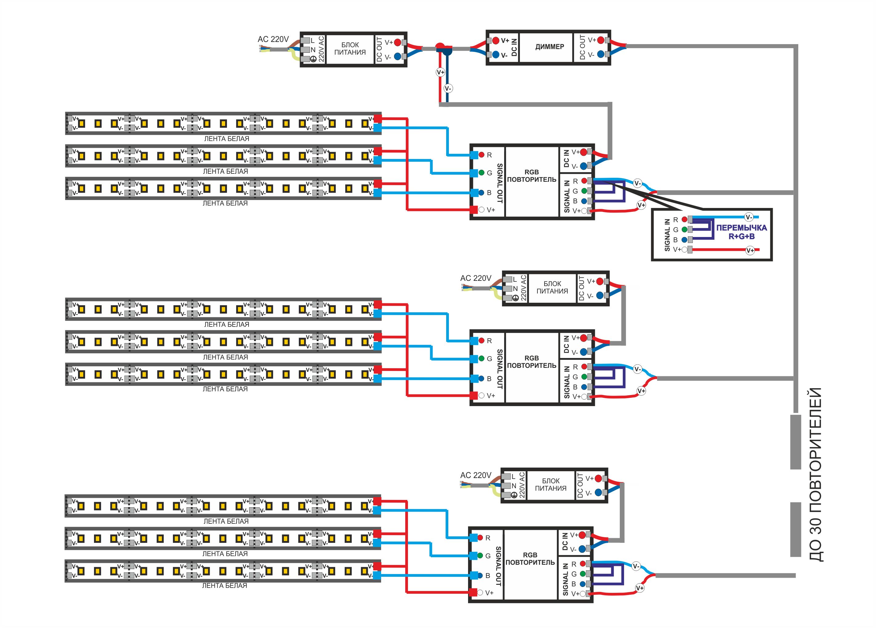 Il existe des cas où un contrôleur est déjà installé dans la pièce, conçu pour une bande d'une certaine longueur, tout en nécessitant le réglage d'un plus grand nombre de DEL. Dans de telles situations, il est recommandé d'installer un amplificateur supplémentaire..