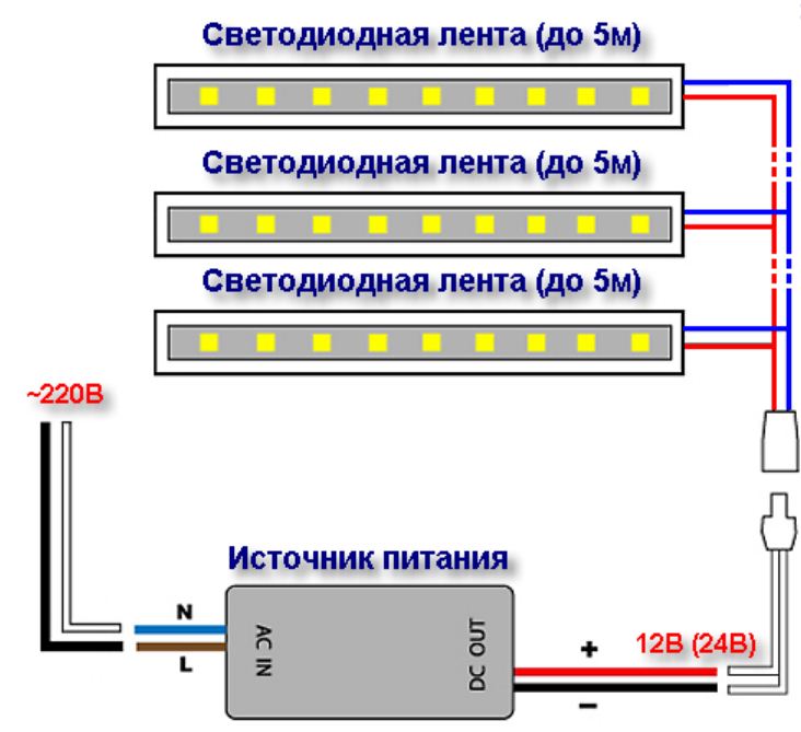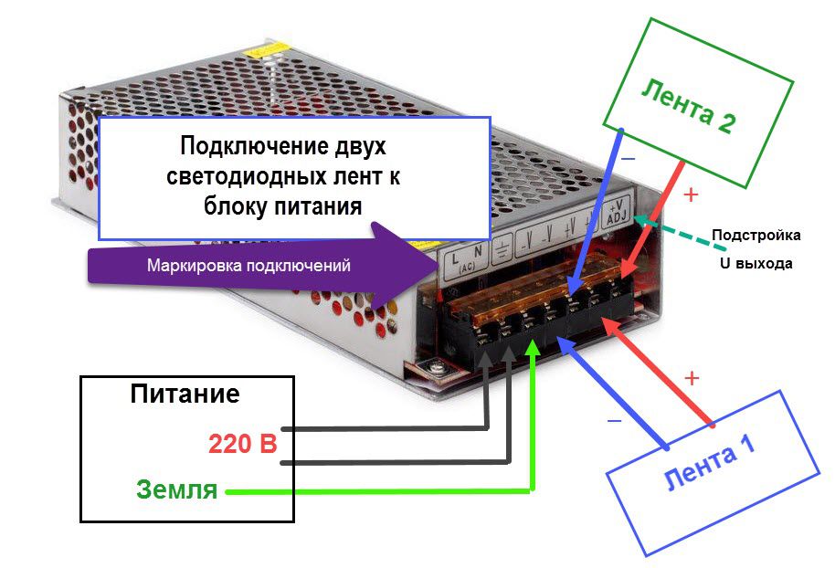Les rubans avec lampes RGB supportent des tensions d'alimentation de 12 et 24V. Ces valeurs doivent être prises en compte lors du choix d'une source d'alimentation. Dans de tels modèles, le contrôleur peut contrôler plusieurs périphériques à la fois, mais la tension de blocage doit être adaptée à la tension d'une seule bande spécifique.