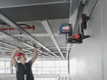- Pour monter un faux plafond, vous en avez besoin abaisser d'au moins 15 cm. C'est un dégagement minimum constructif pour la pose de communications et l'installation de luminaires Vous pouvez également poser une isolation dans cet espace. Le moyen le plus pratique de marquer un mur consiste à utiliser un niveau laser. Les niveaux à bulle ordinaires peuvent être utilisés à la place.