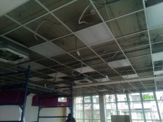 - Les cellules. Le plafond entier est divisé en carrés ou rectangles, qui sont recouverts de plaques à l'arrière.