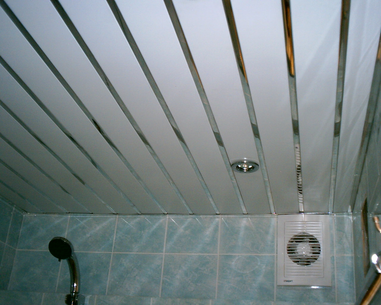 - Panneaux en plastique. Ils sont fabriqués à partir de polycarbonate. La surface des miroirs des plafonds en plastique constitue un excellent remplacement des panneaux de verre. Ce plafond est facile à installer, résistant à l'humidité, aux contraintes mécaniques, facile à nettoyer.