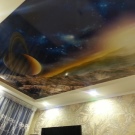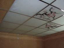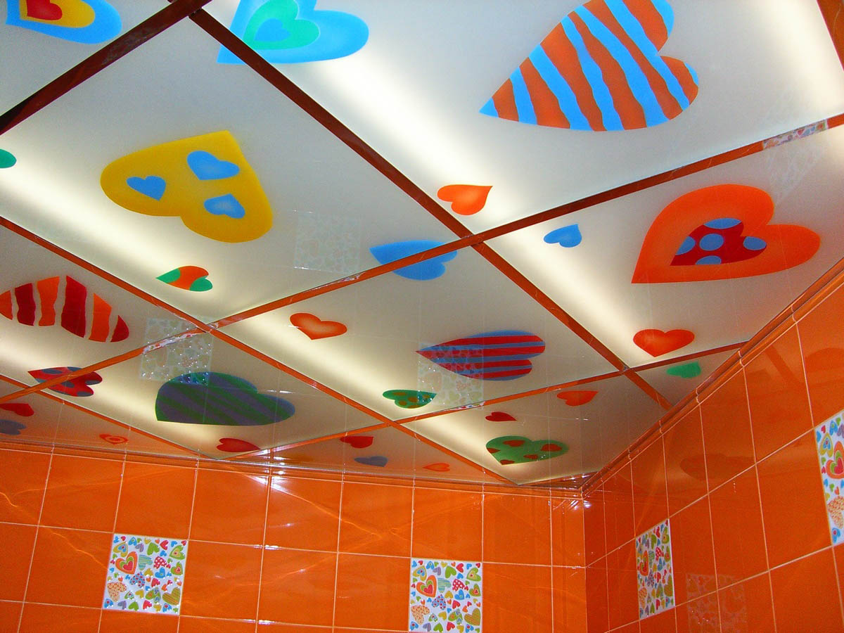 - Dans la plupart des cas, les matériaux de revêtement ont une imprégnation supplémentaire.Pour cette raison, le condensat est exclu. Vous pouvez décorer les plafonds des salles de bains, chambres à coucher, salons, cuisines, salles d’étude, bibliothèques à la maison, couloirs, couloirs avec de tels motifs.