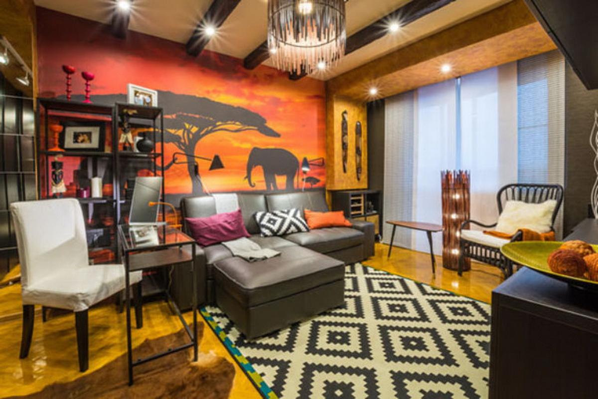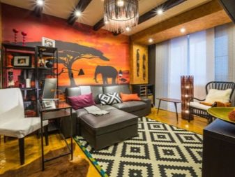En arabe, la compréhension est importante palette de couleurs riches et un éclairage maximal. Accueille le luxe du design, la présence de personnages en forme de sphères et d'un demi-cercle, reliés entre eux par des motifs complexes. Dans le thème africain devrait être ressenti dynamique, expression et couleur flashy.