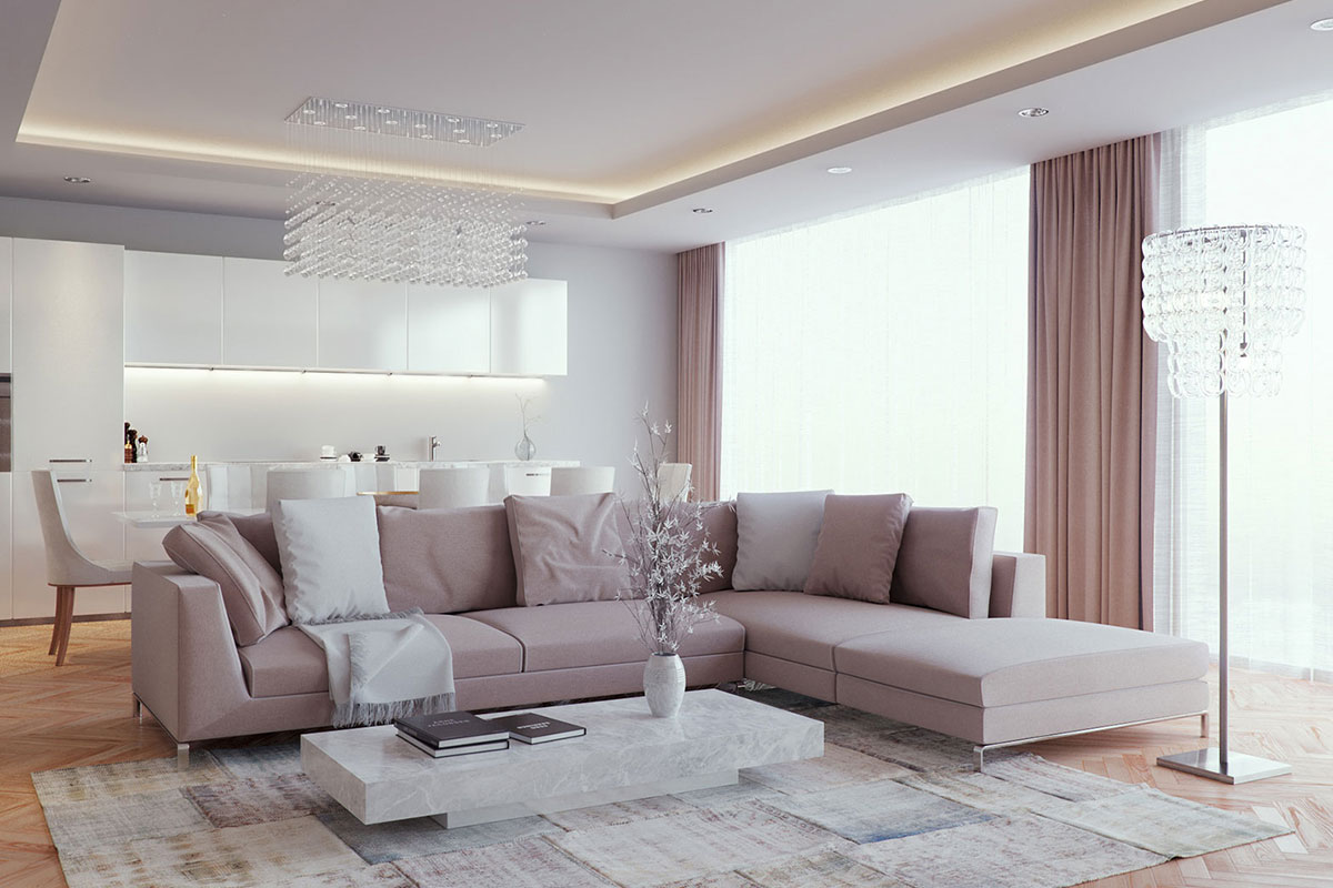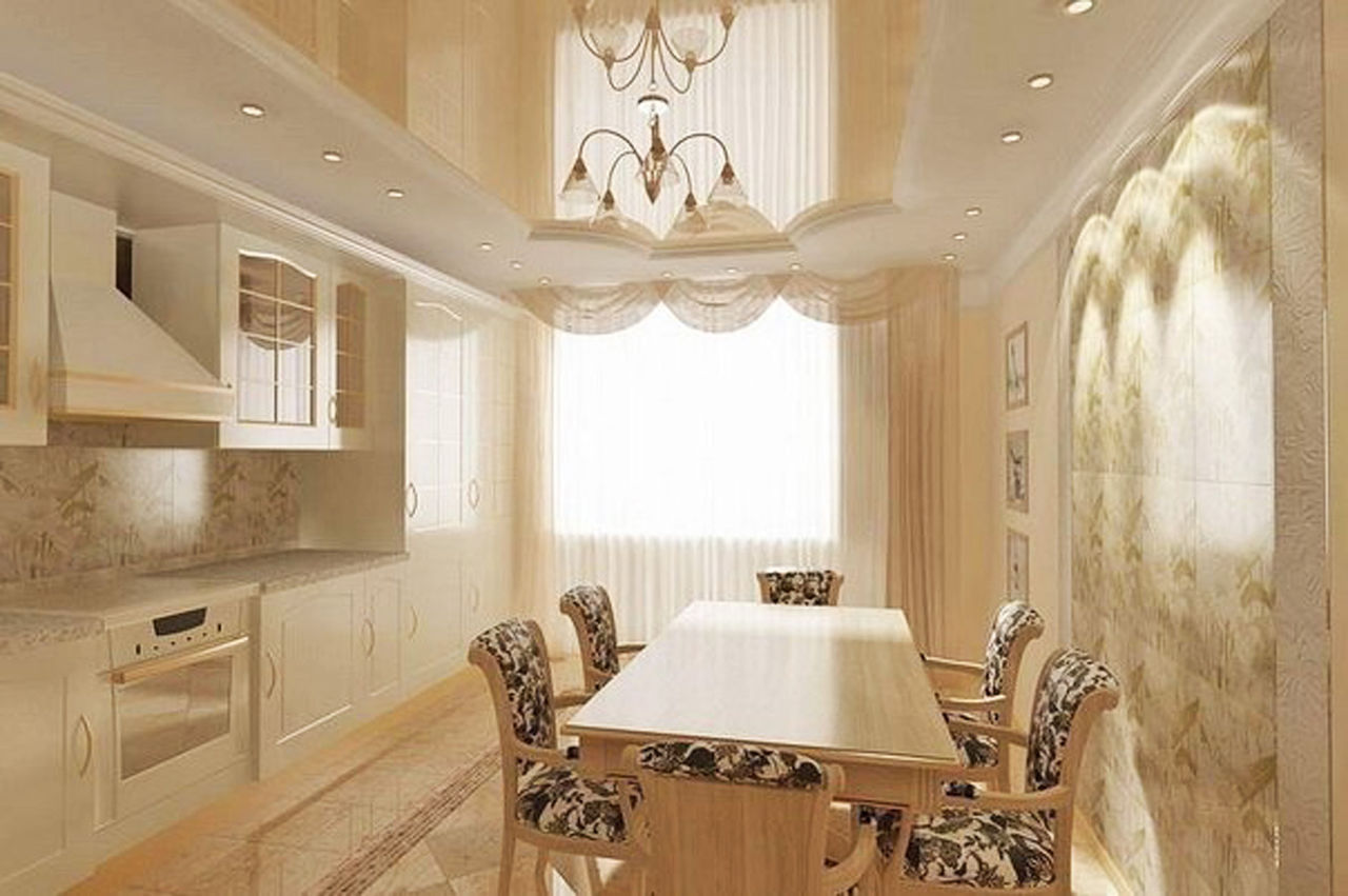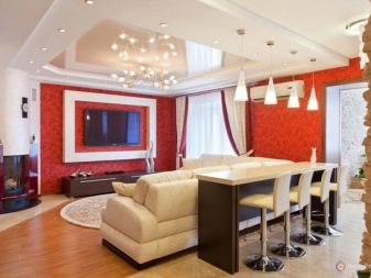 Si nous considérons le moderne, l’art nouveau, l’art déco, il est important de montrer l’utilisation des bases synthétiques et ses possibilités en matière de décoration. Par exemple, une texture brillante est préférable, parfois des inserts de miroir, du bohémisme et de la prétention doivent être ressentis. Assurez-vous de souligner le design de la suspension de belles lampes ergonomiques. La technologie de revêtement peut être transparente.