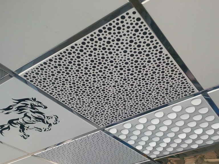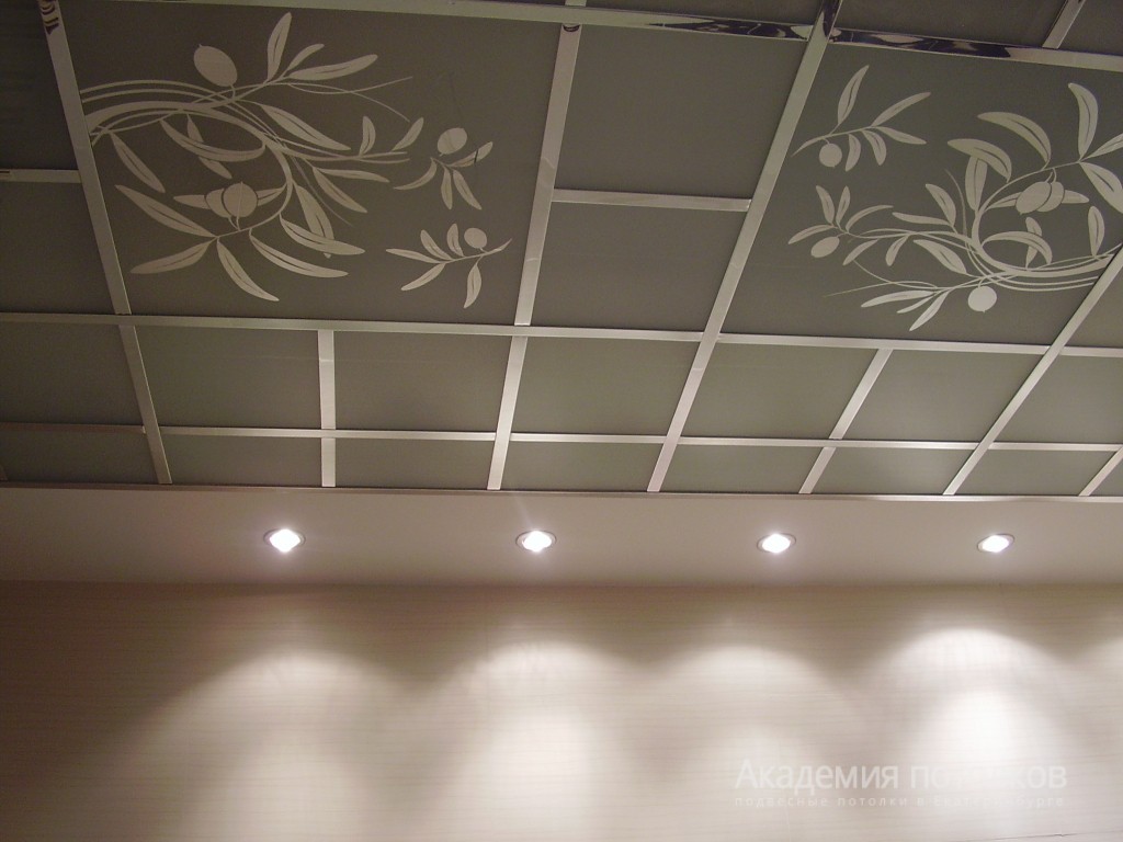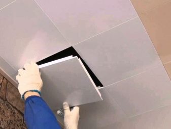 Les variétés en mosaïque sont constituées de plaques de plâtre perforées, de bois (chêne, bambou, frêne), de verre acrylique, de fibres minérales et de silicate. Les plaques minérales vous permettent de créer une apparence acoustique des plafonds suspendus. Les cassettes de couleur sont peintes à haute température. Par conséquent, ils résistent au soleil. Lors de l’installation de la pile de cassettes sur des rails spéciaux. Il se conserve au détriment d'un petit poids. La tuile peut être polie ou peinte dans n'importe quelle couleur sans limitation.