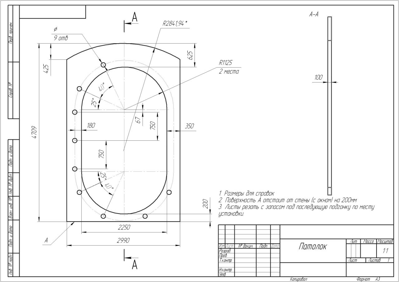 Les dimensions peuvent dépendre de la hauteur du plafond. Plus il est bas, plus la conception est simple, moins d'éléments.. Par exemple, si l'espace est limité, effectuez un petit demi-cercle dans l'un des coins.