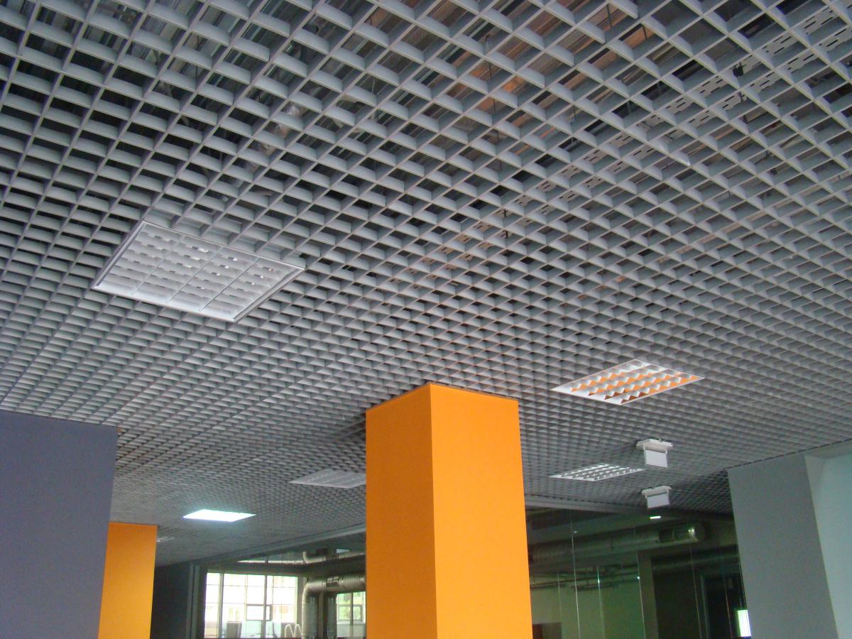 Ces plafonds ressemblent à un réseau attaché à un cadre. Il s’agit souvent de plafonds à un niveau sous la forme de cellules identiques, pour lesquelles ils sont souvent appelés cellules. La seule décoration de ces dessins est le rétro-éclairage. Il peut être intégré ou séparé, situé sur les poutres sous forme de spots. La forme des cellules peut être ovale, carrée, hexagonale, triangulaire et figurée.