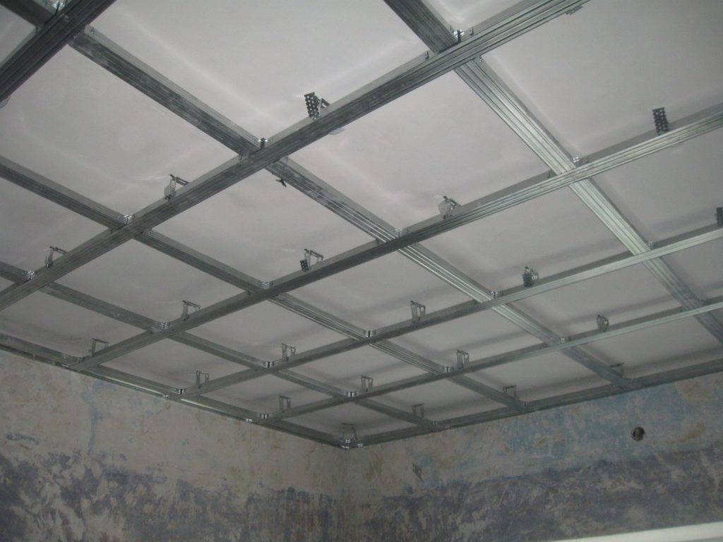 Si cela est plus simple, le cadre est maintenu sur des cintres en métal, qui sont montés dans le plafond lui-même à une certaine distance les uns des autres. La longueur des suspensions est identique, ce qui détermine la régularité du plafond par rapport au sol. Les suspensions retiennent les supports auxquels sont attachés des profils métalliques. Les matériaux de finition sont vissés dans les profilés eux-mêmes, en essayant d’arrimer les feuilles aussi soigneusement que possible.