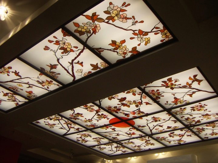 Éclairage des plafonds suspendus dignes d'attention séparée. Toutes les espèces existantes peuvent être divisées en deux types: