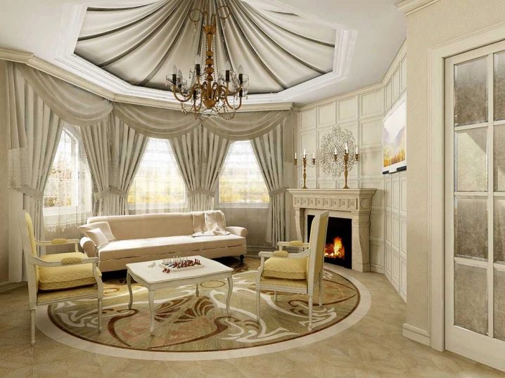 Il est intéressant de regarder de telles constructions dans des pièces à la baie vitrée dont le plafond est en forme de dôme.